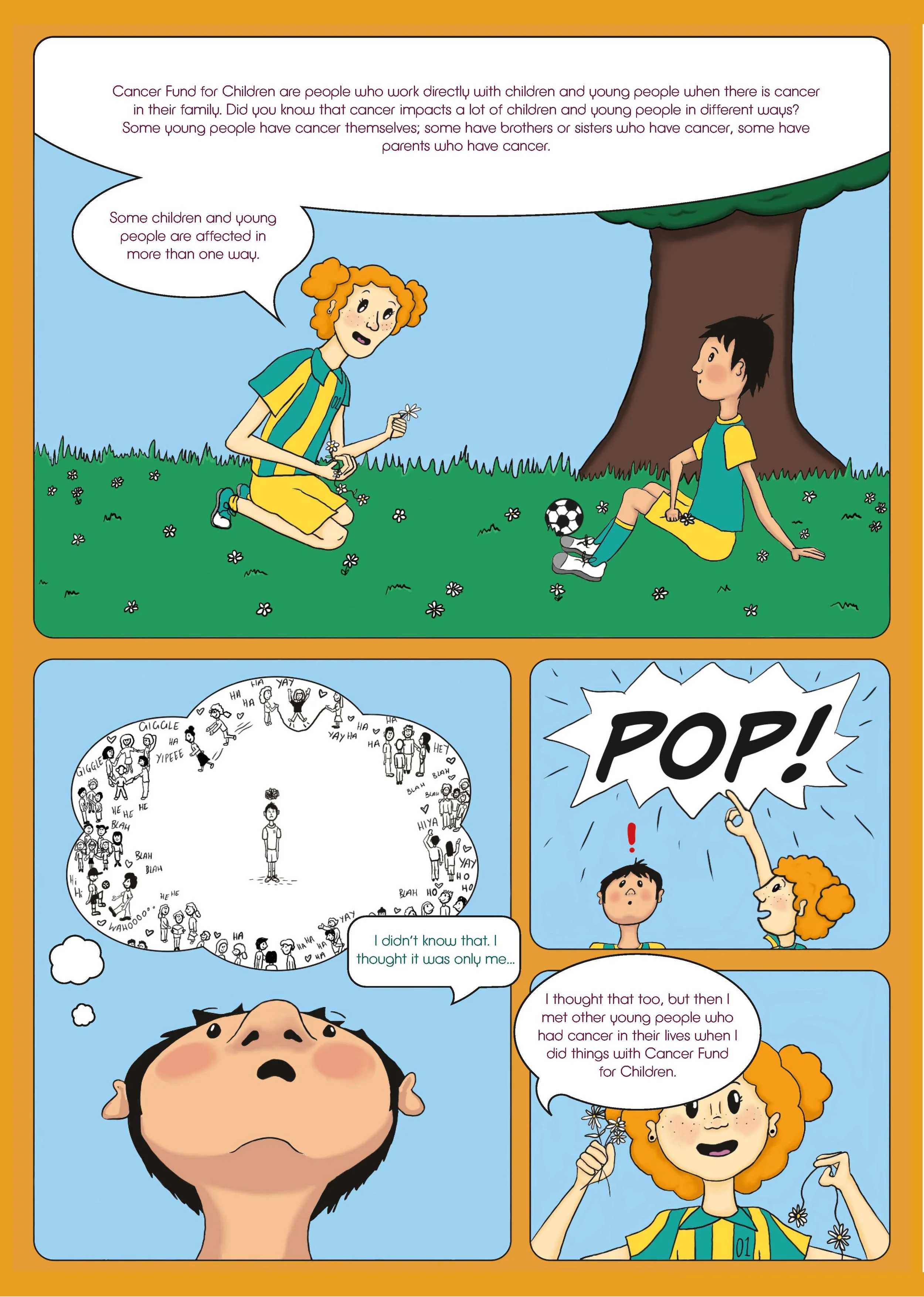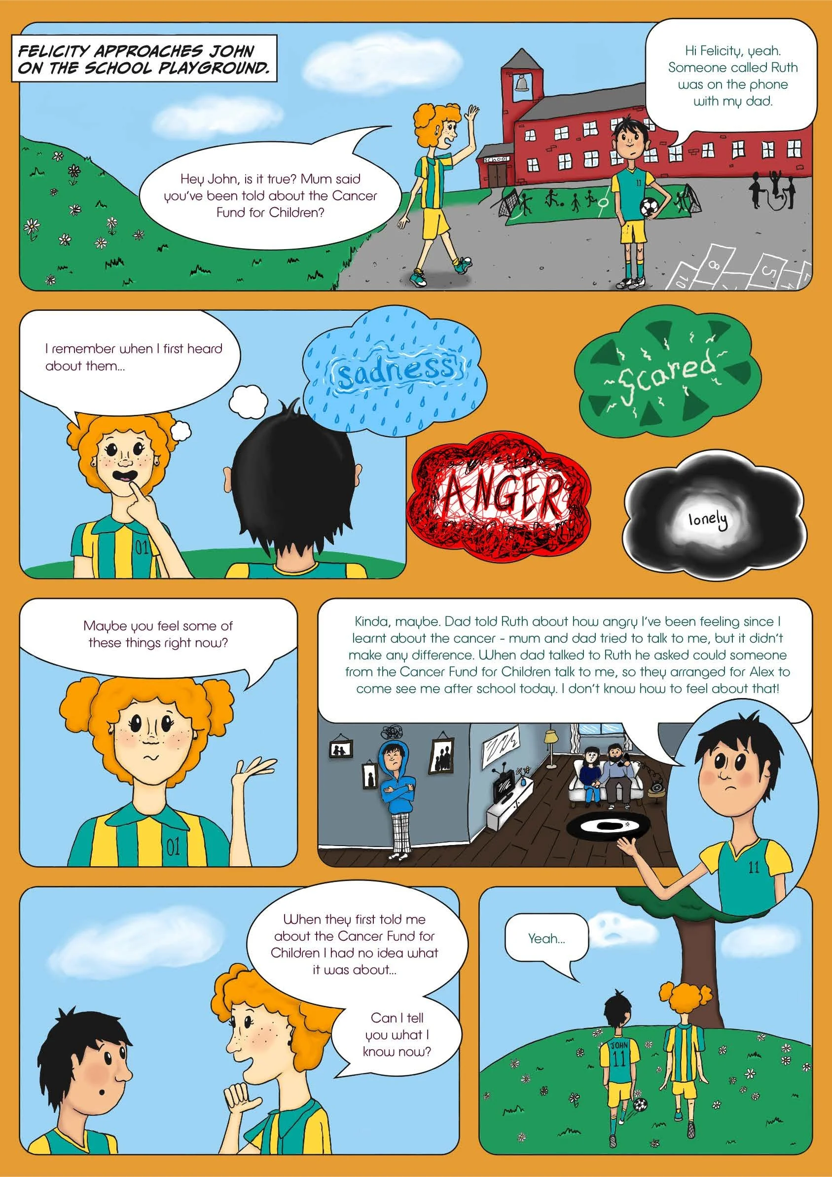 This was a great project where I got the chance to work with two amazing members of Cancer Fund for Children’s Youth Engagement Group to illustrate a comic book.