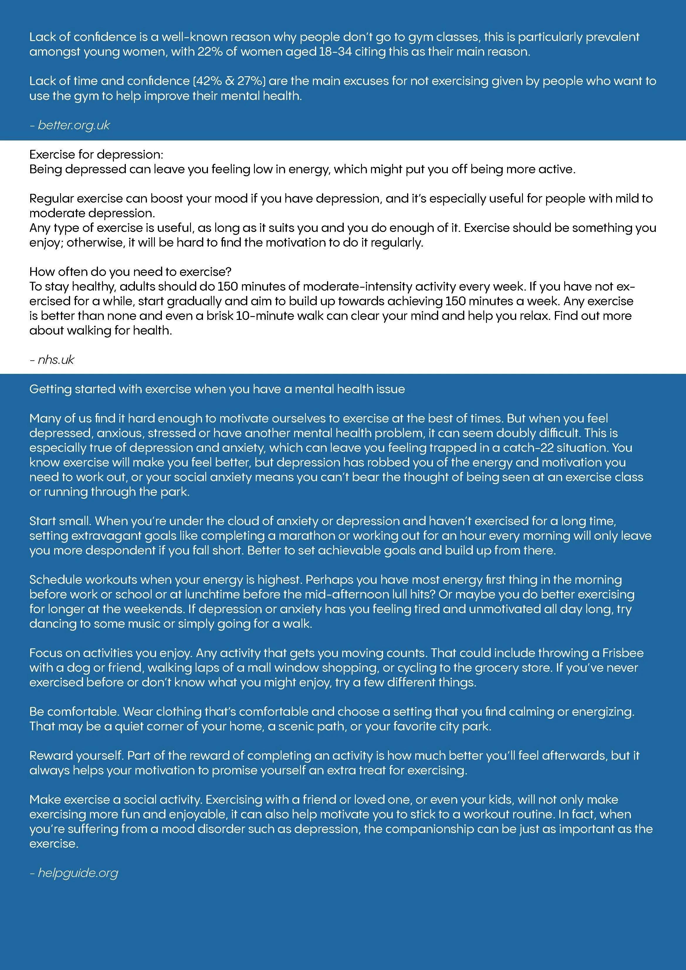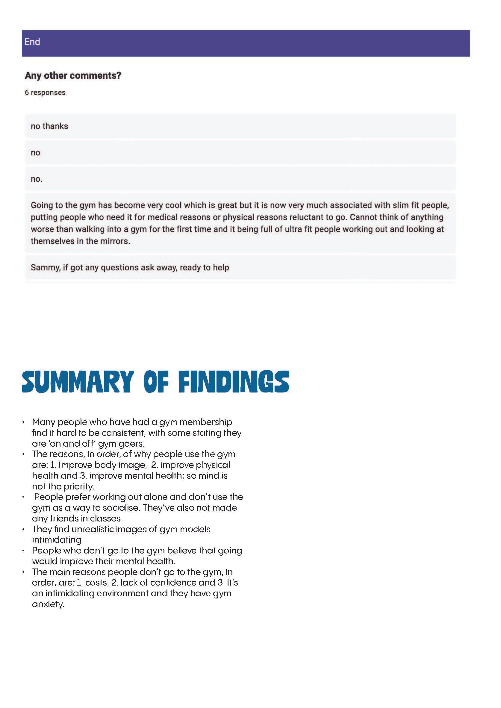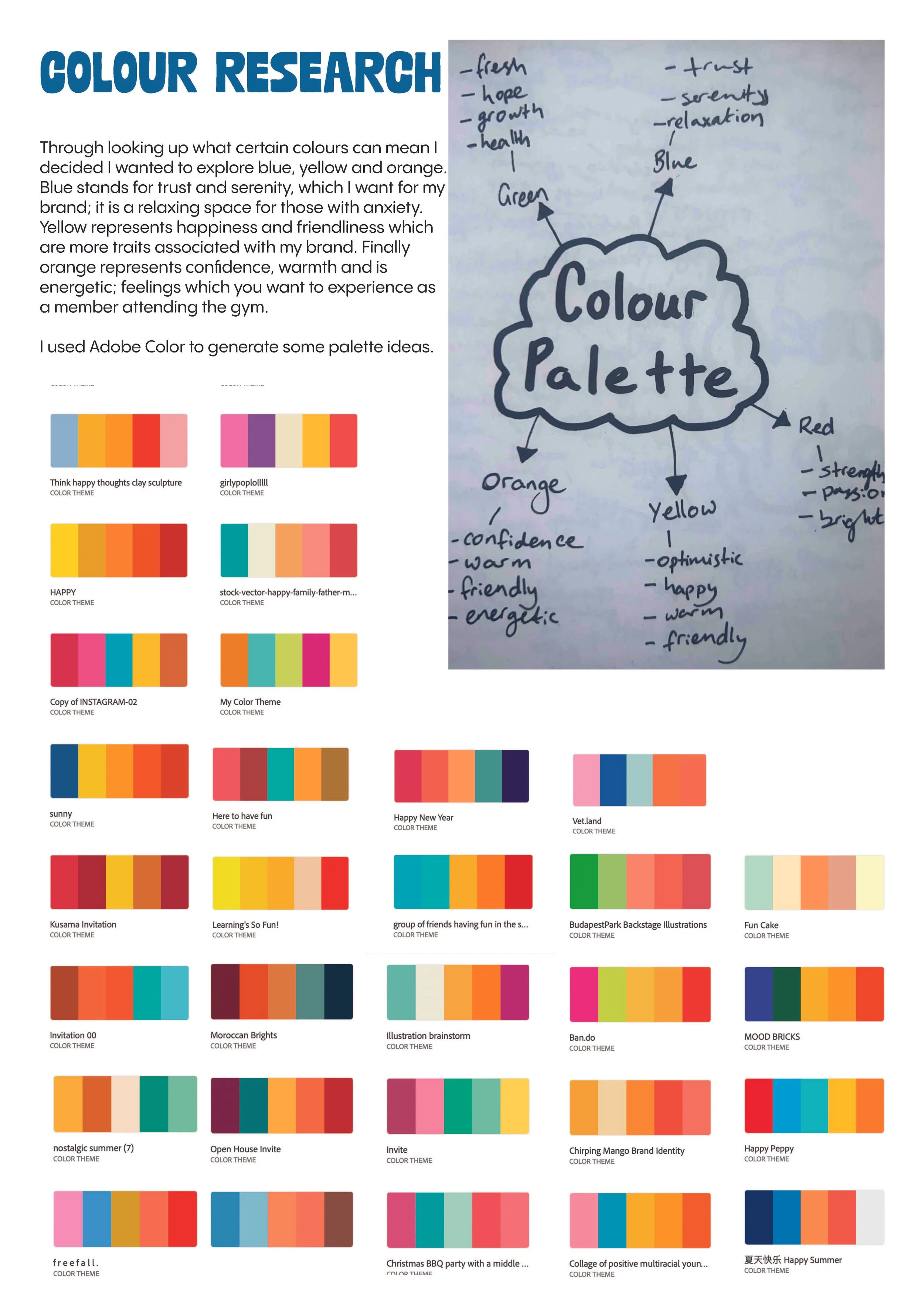 Define - From this, I discovered that 2 in 5 people avoid the gym as they feel self-conscious, and 1 in 10 people say that their mental health is preventing them from joining a gym. This shows that there is a need to create a gym for those who would usually feel out of place there and for those who struggle with their mental health. I aimed to create a gym with a fun, inclusive, and non-judgmental atmosphere so that all can feel welcome. Mental health is a priority, as well as the promotion of body positivity. I created personas for this project based off people who would be seeking a safe space to exercise.
