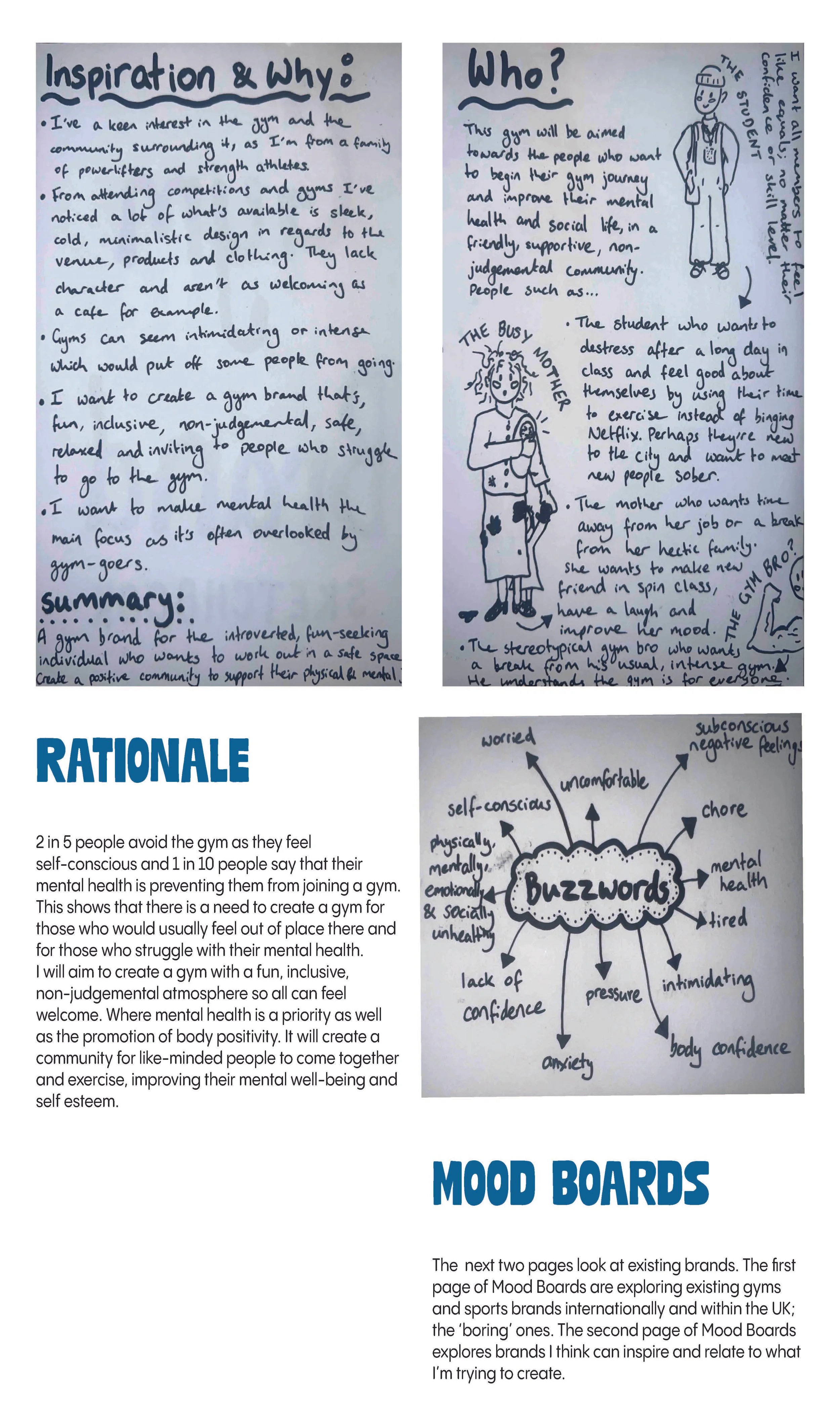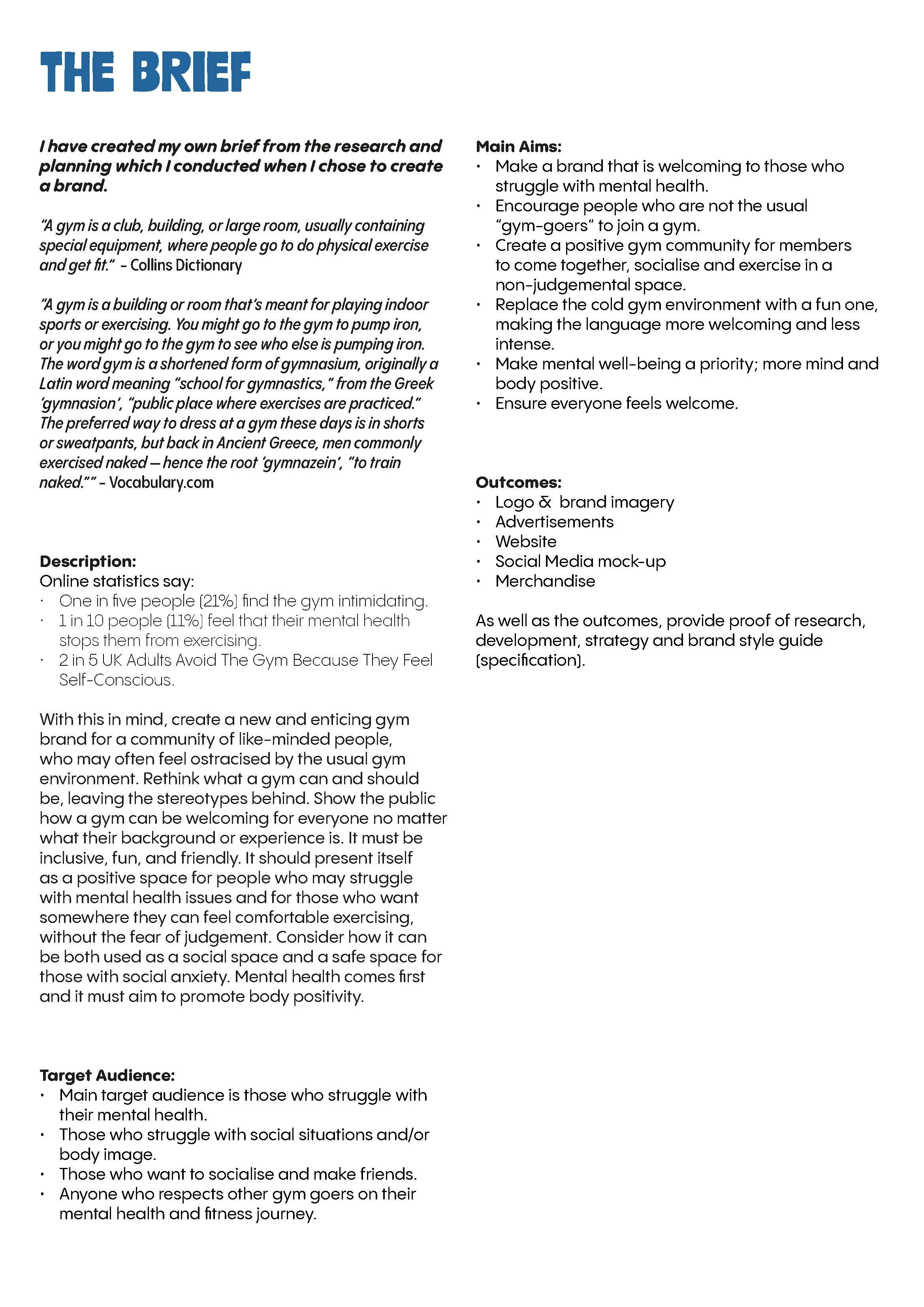 The brief which I made for myself was to create a new and enticing gym brand for a community of like-minded people, who may often feel ostracised by the stereotypical gym environment.