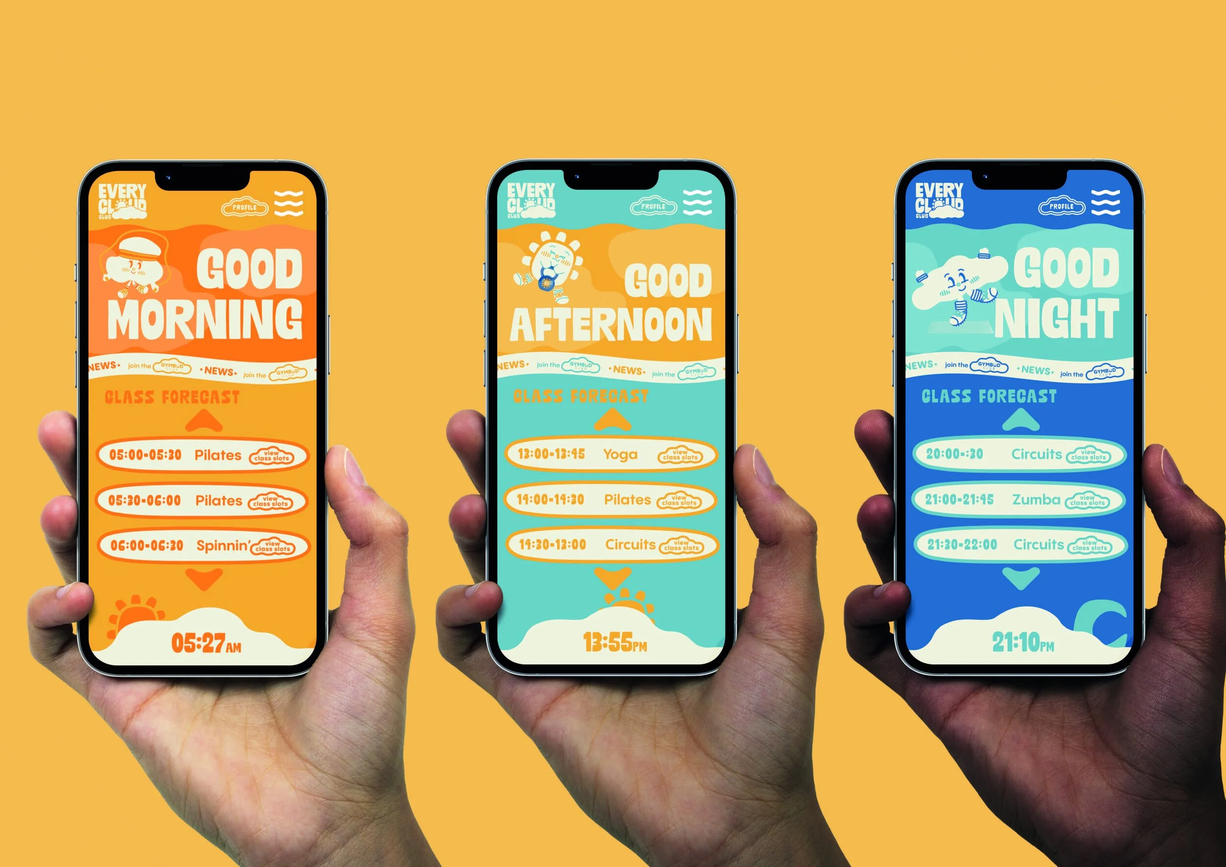 Deliver - I created a whole new brand for a gym, mock-ups for merchandise, way finding, website and apps.