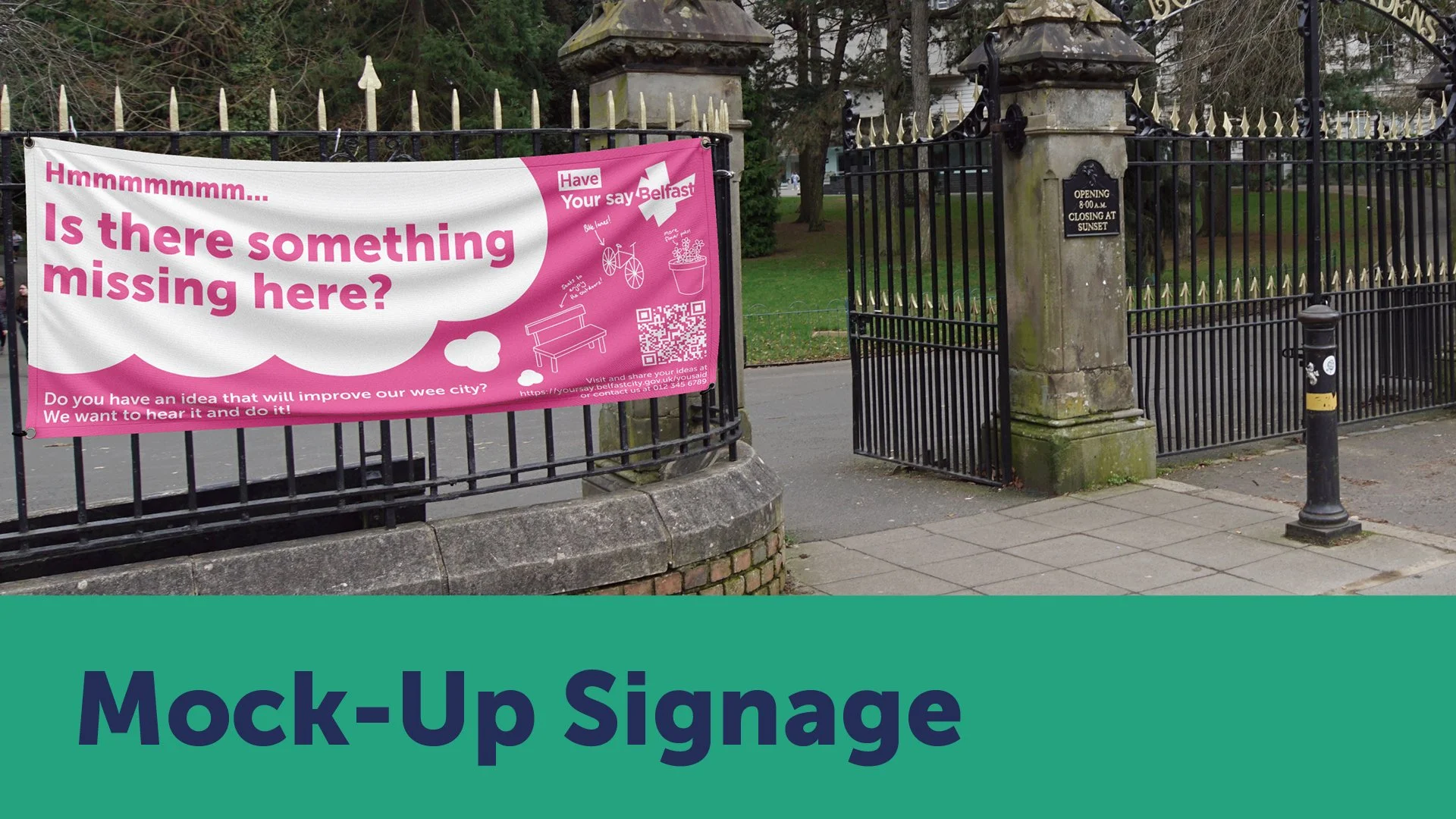 Deliver - We created mock-ups for how this service could look throughout different areas in Belfast. We also made a social media mock-up and a website prototype to show how it could be updated to be more user-friendly. We then presented our idea to the City Council.